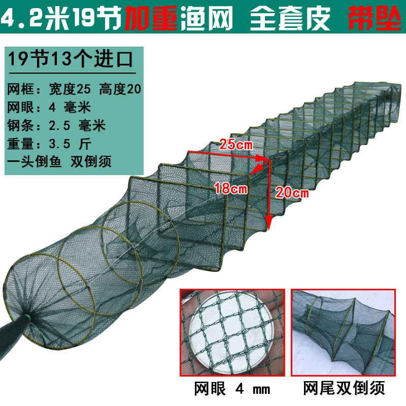 25米30米有结网大框架虾笼螃蟹笼龙虾网养殖大鱼笼加粗丝折叠鱼网