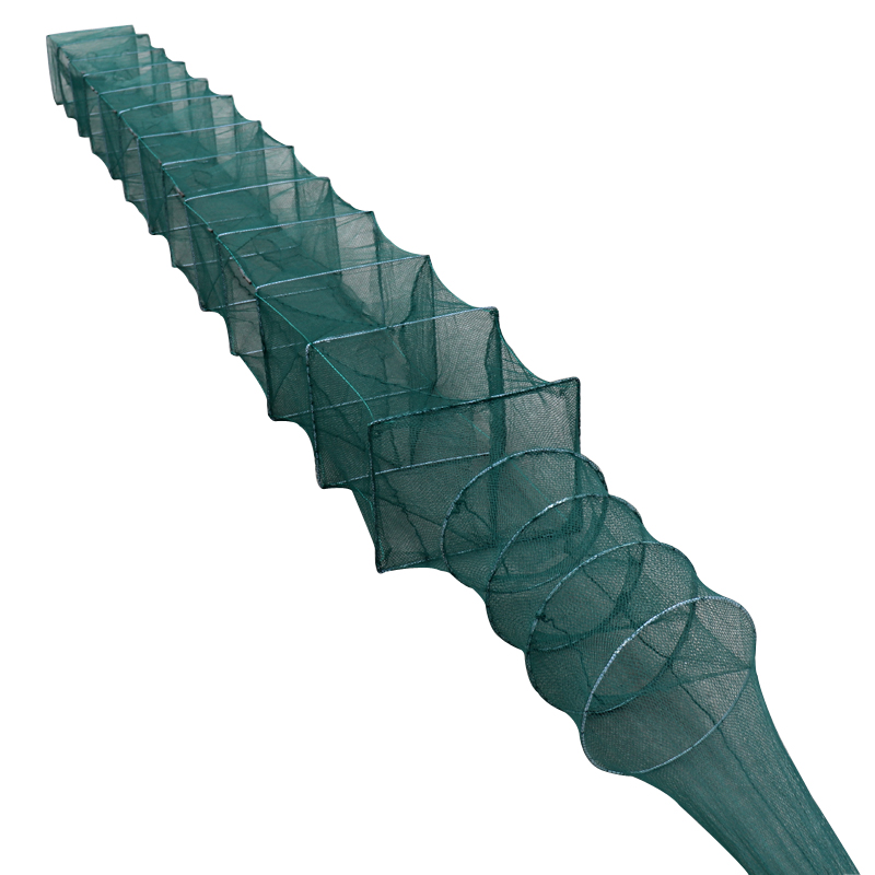 本款虾笼渔网专为捕捉龙虾、黄鳝、河虾等淡水水产设计,采用高强度加厚尼龙网布,抗撕裂、耐腐蚀,使用寿命长。笼体结构科学,入口采用倒须设计,有效防止猎物逃脱,提升捕捞效率。整体可折叠收纳,轻便易携带,适合河流、湖泊、池塘等多种水域使用。笼身设有多个进鱼口,诱捕范围广,配合诱饵使用效果更佳。无论是专业渔民还是休闲垂钓爱好者,都能轻松操作,收获满满。环保材质安全无毒,对水域生态友好,是高效、实用的捕鱼工具。