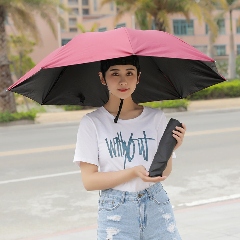 淘头戴式雨伞帽双层折叠大号晴雨两用帽子伞钓鱼防晒伞遮阳采茶帽子