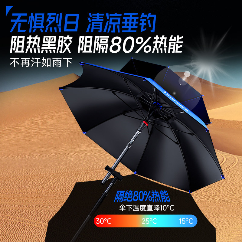 淘钓鱼伞2025新款户外钓鱼专用遮阳伞防晒防暴雨加厚黑胶拐杖大钓伞