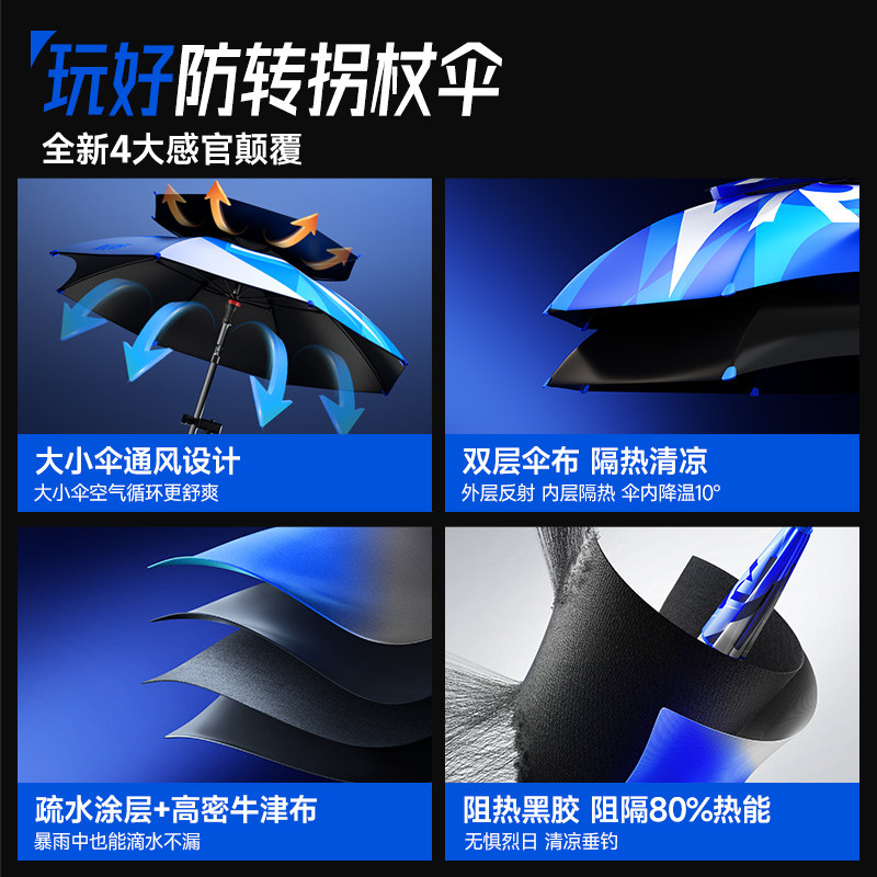 威拓森玩好遮阳防晒拐杖钓伞是一款专为户外垂钓设计的智能多功能伞具,集遮阳、防晒、便携与稳固于一体。其独特机械臂万向调节结构,可360°自由旋转,轻松应对不同风向与日照角度,确保全方位防护。伞杆采用高强度材质,兼具拐杖功能,提升野外行走稳定性。伞面配备可更换伞布设计,方便清洗与个性化搭配,耐用又环保。超大伞面有效阻隔紫外线,防晒指数高,适合长时间户外使用。无论是湖边、河边还是山地垂钓,这款专用钓鱼伞都能提供舒适、安全的遮阳体验,是钓鱼爱好者的理想装备。