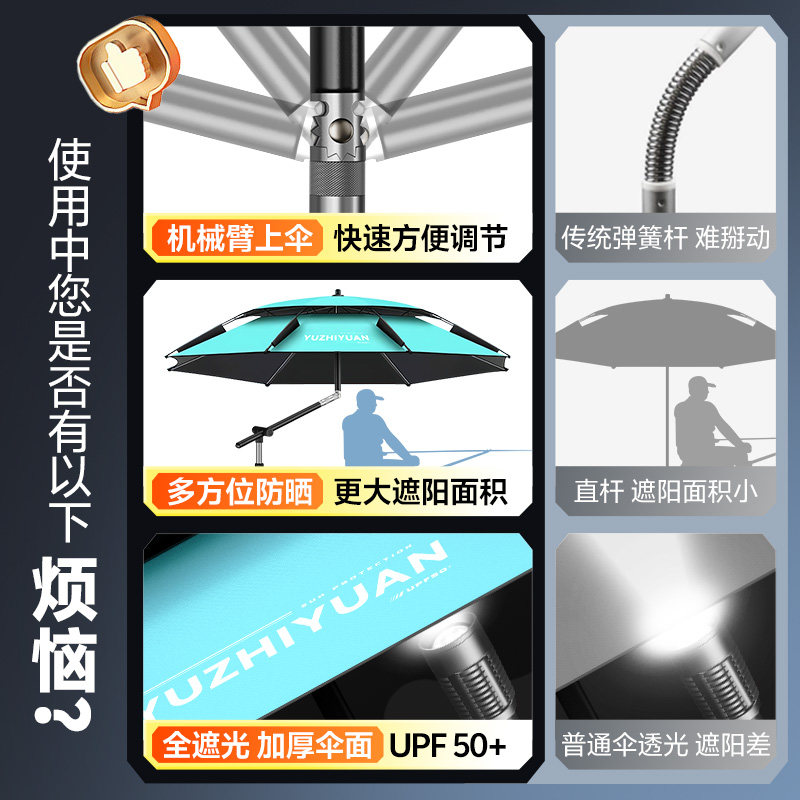 淘钓鱼伞机械臂钓伞万向手杖伞加厚黑胶遮阳户外伞防暴雨户外遮阳伞