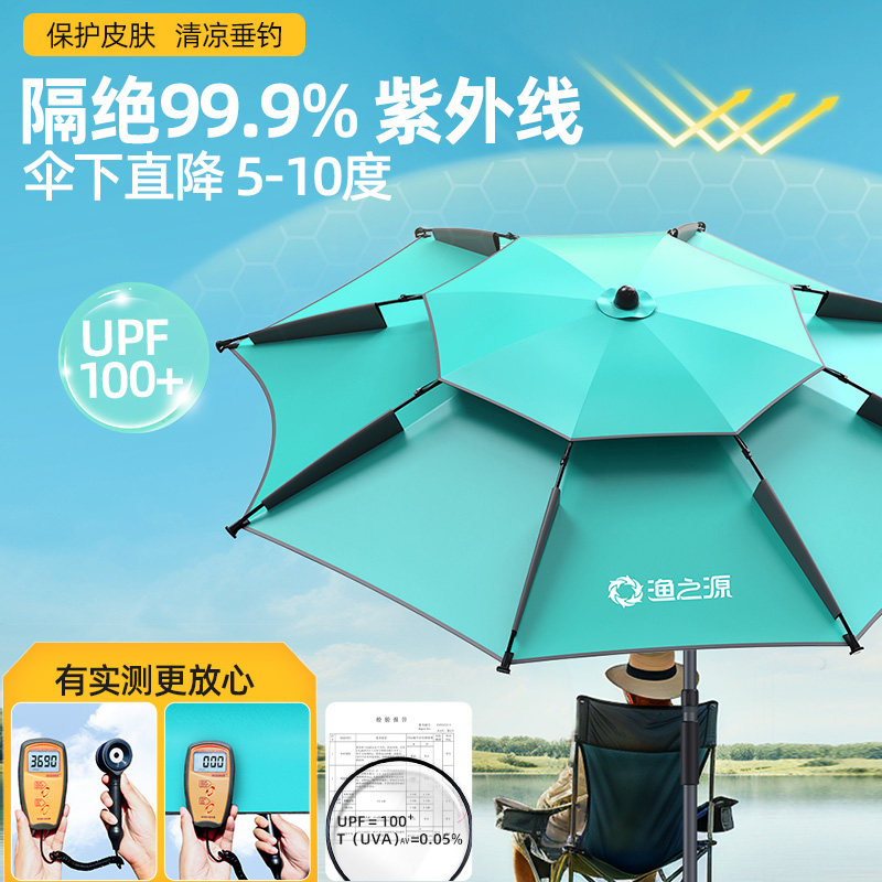 渔之源2025新款钓鱼伞,专为户外垂钓爱好者匠心打造。采用高强度铝合金骨架与防撕裂遮阳面料,抗风稳固、防晒防雨性能卓越,有效阻挡紫外线,守护长时间作钓舒适体验。伞面宽大,覆盖面积充足,边缘加高设计增强防风效果。独特拐杖式手柄,可插入地面固定,解放双手,稳固支撑。伞骨结构经过优化,开合顺滑,携带轻便,适配多种地形。无论是湖边、河边还是海钓,渔之源专业钓鱼伞都是您值得信赖的户外伴侣,让垂钓更从容、更安心。