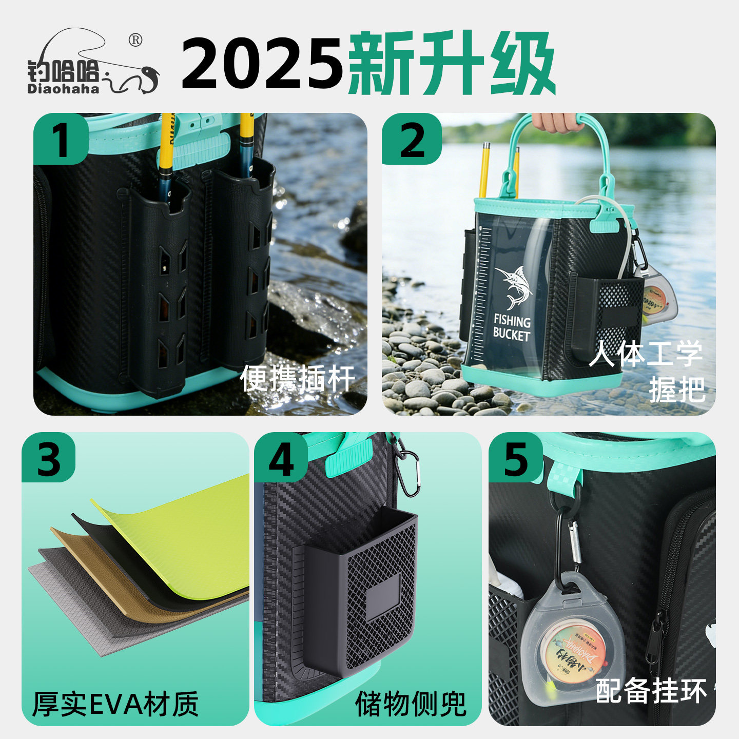 天猫多功能新款钓鱼桶碳纹大容量户外便携加厚小物收纳桶活鱼桶钓鱼桶