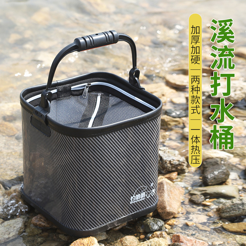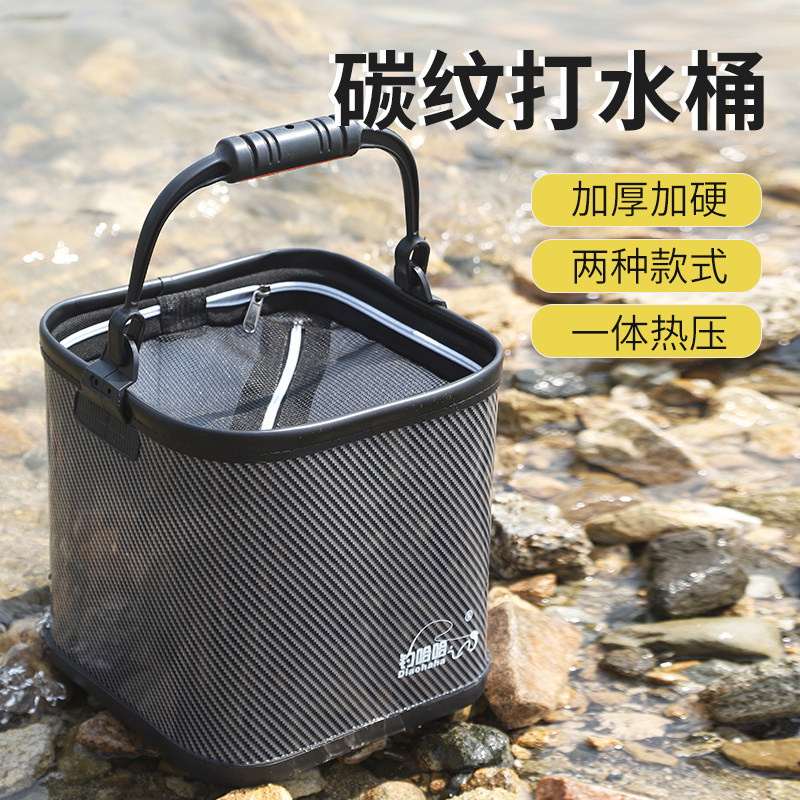 淘宝钓哈哈户外打水桶碳纹装鱼桶加高加厚热压钓鱼水桶便携收纳钓鱼桶