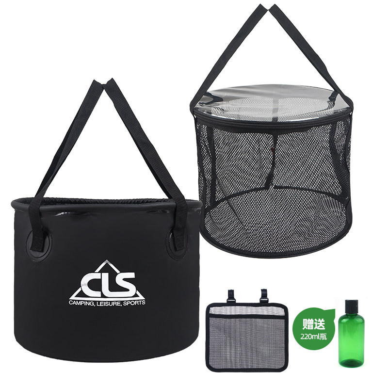 淘宝升级户外便携折叠水桶沥水篮露营烧烤洗菜洗碗桶伸缩钓鱼桶渔具包
