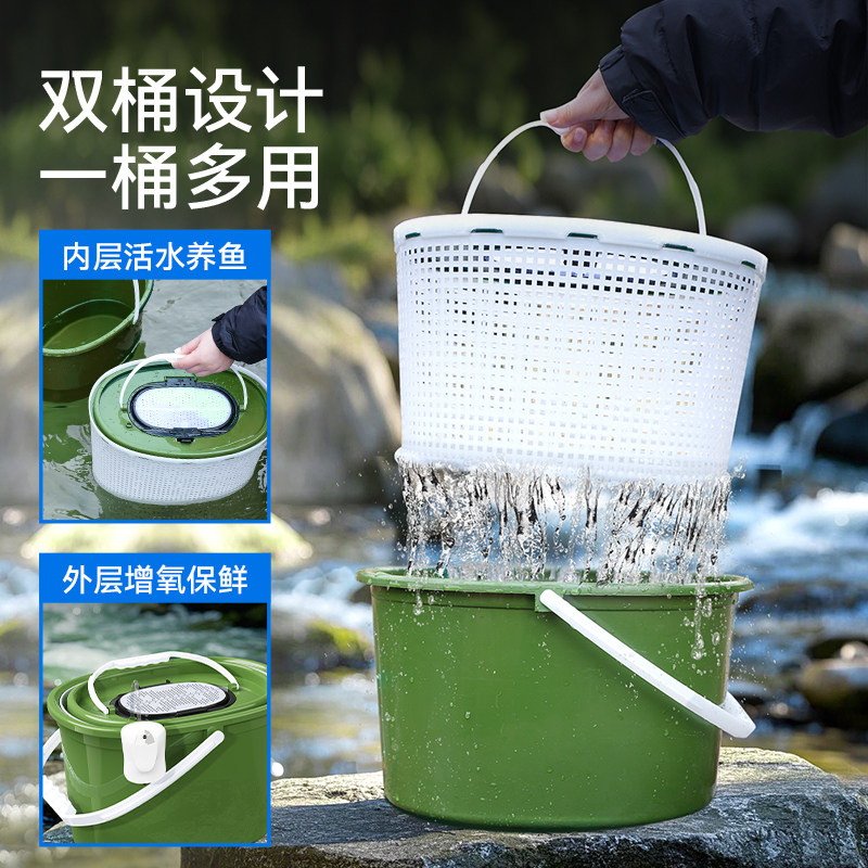 天渔之源溪流活鱼桶钓鱼桶一体成型装鱼桶双层鱼桶野钓专用新型鱼箱
