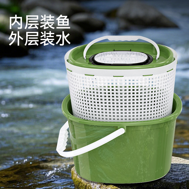 渔之源溪流活鱼桶钓鱼桶一体成型装鱼桶双层鱼桶野钓专用新型鱼箱