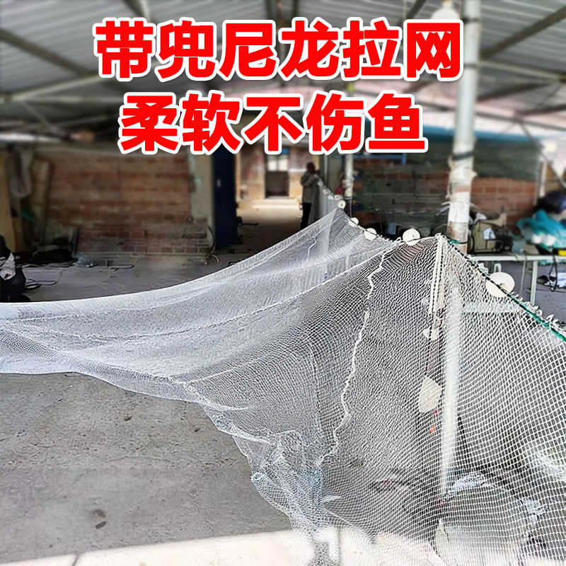 淘宝定做尼龙捕鱼拉网新款带兜拖网隔断清塘鱼苗鱼塘围网渔网不伤鱼网