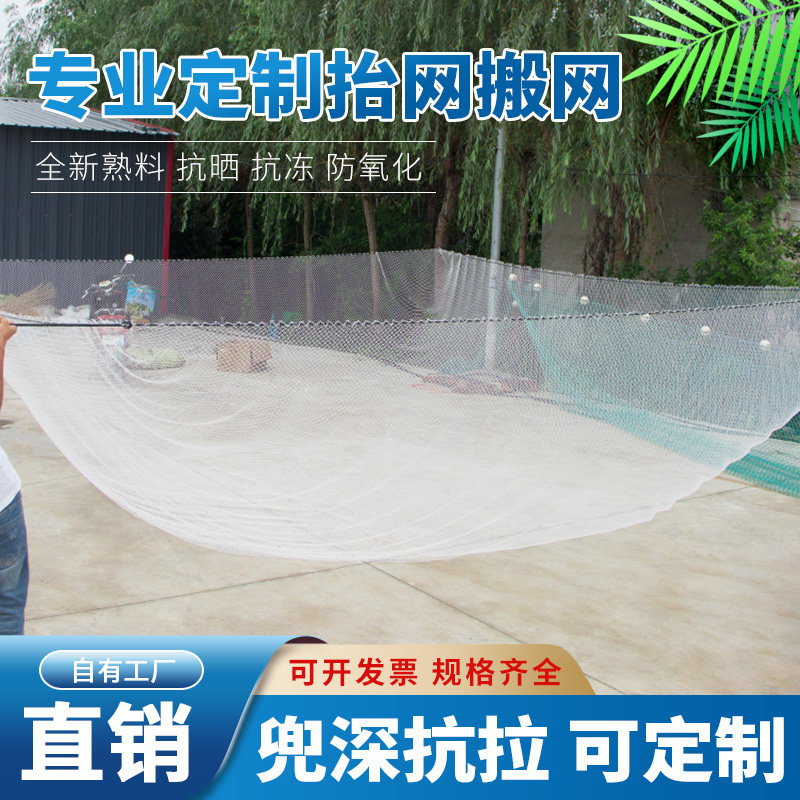 尼龙抬网、搬网、拉网等是鱼塘、网箱养殖及捕捞作业中常用的渔具。采用高强度尼龙材料制成,具有耐磨、抗老化、使用寿命长等特点。抬网适用于浅水区域集体起鱼,操作简便,配合吊网或提网可快速收拢渔获;搬网多用于围捕,灵活机动;拉网则适合大面积水域拖曳捕捞。这些网具结构牢固、网目规格多样,可根据目标鱼种调整,广泛应用于淡水养殖、池塘清塘及活鱼转运等环节,显著提升捕鱼效率与成活率,是现代渔业生产不可或缺的重要工具。
