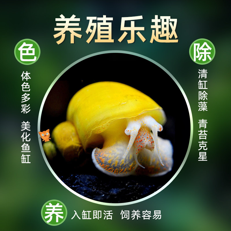 淡水苹果螺(又称黄金螺)是观赏鱼缸中高效实用的除藻工具。它们体型圆润,外壳呈金黄色或黄褐色,不仅外形可爱,更以旺盛的食藻能力著称。苹果螺喜食缸壁、水草及沉木上的绿斑藻、褐藻等顽固藻类,帮助维持水质清洁,减少人工清理负担。适应力强,对水质要求不高,适合新手饲养。作为温和的杂食性螺类,它们还能摄食残饵和腐殖质,促进生态平衡。繁殖较快,需注意控制数量。无论是作为功能性除藻助手,还是作为活泼的小宠物,苹果螺都是水族箱中兼具观赏价值与实用性的理想选择。