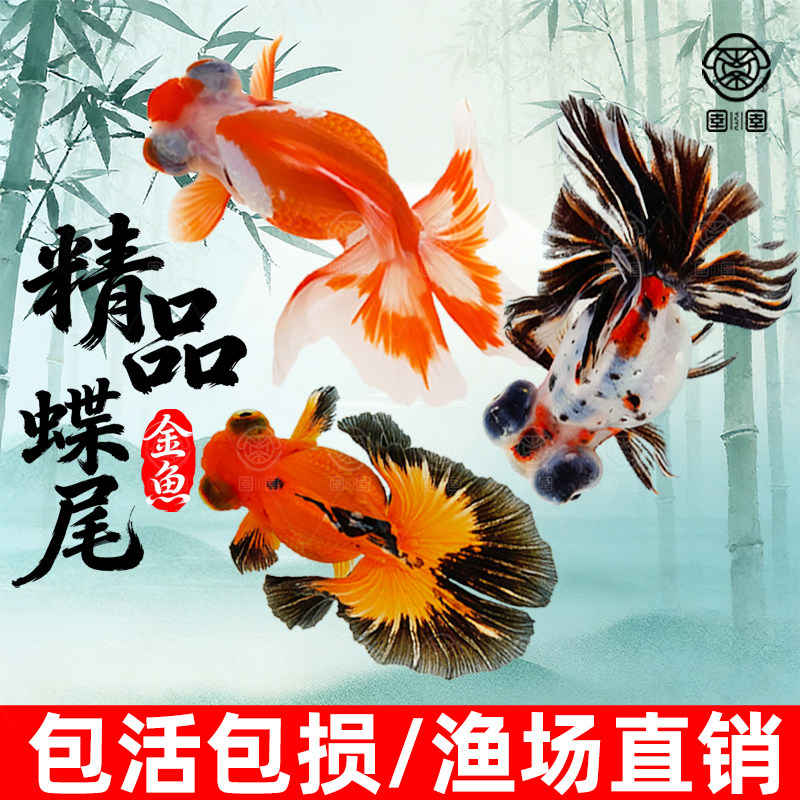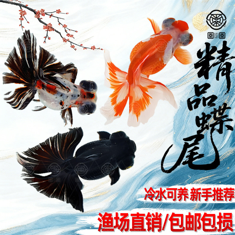 天猫蝶尾金鱼小型淡水观赏鱼大眼冷水鱼红白包金蝶尾泰狮好养易活龙睛