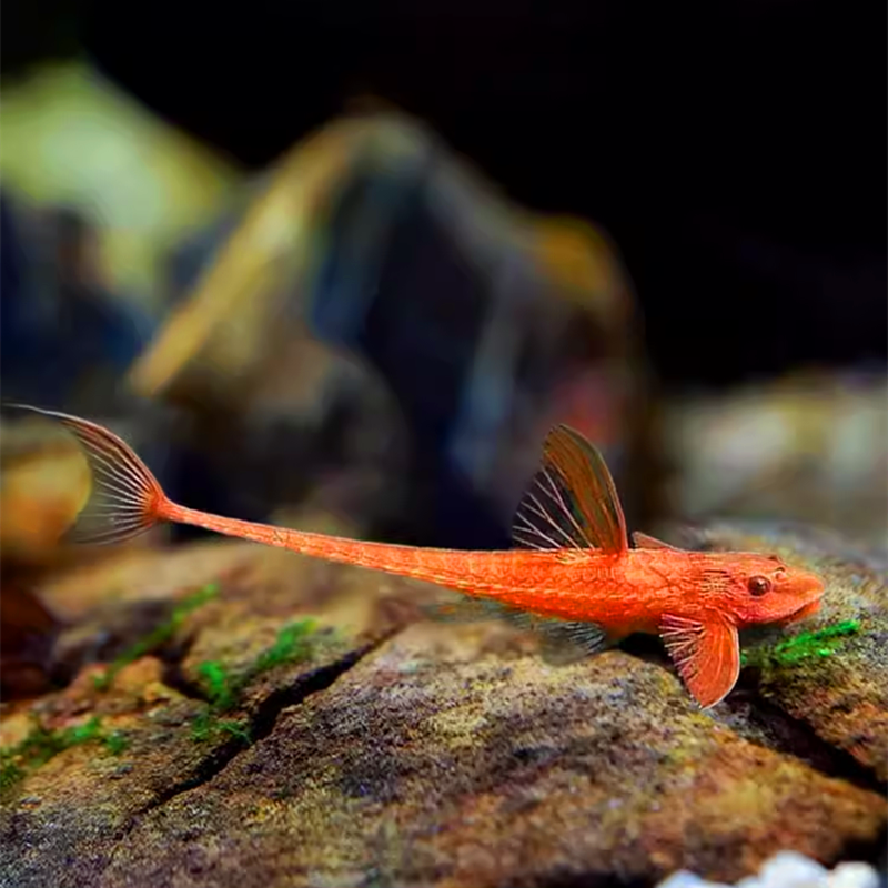 红蜻蜓直升机、皇冠直升机是异型鱼中极具观赏价值的工具鱼,常用于水族箱生态维护。它们体型独特,体表斑纹如热带鱼般绚丽,兼具除藻功能,能有效清理缸壁及沉木上的藻类,维持水质清洁。作为活体观赏鱼,它们适应力强,性情温和,适合与中下层鱼类混养。红蜻蜓直升机体色偏红褐,纹路细腻;皇冠直升机则拥有更夸张的头部棘刺和华丽斑纹,被誉为“水中清道夫中的贵族”。二者不仅提升水族箱美观度,更助力构建健康生态,是热带鱼爱好者理想的异型鱼选择。