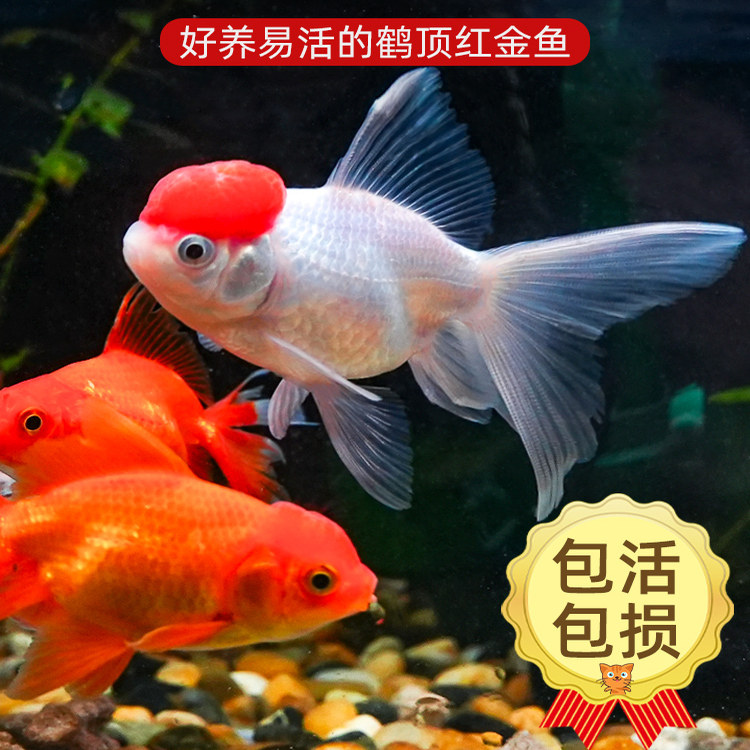天猫鹤顶红金鱼红头活体鱼观赏鱼红狮子头丹顶冷水鱼淡水好养耐活金鱼