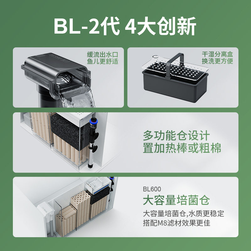 淘方小章第2代客厅超白玻璃双盒4仓大型背过滤鱼缸生态自循环金鱼缸