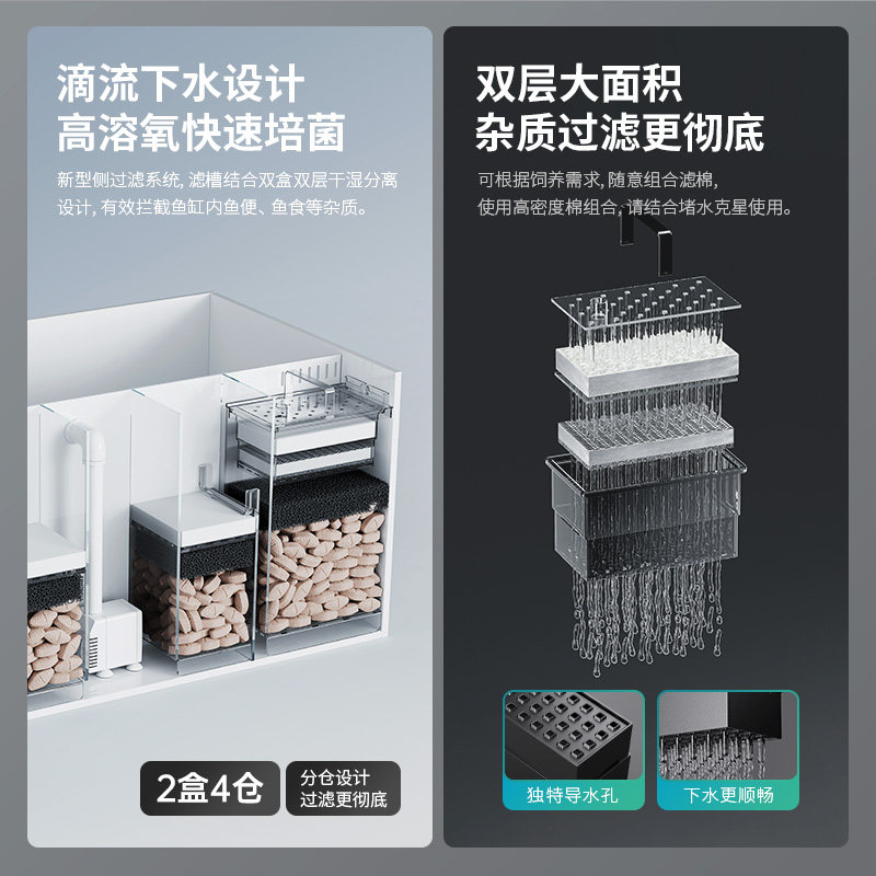 淘宝方小章第2代客厅超白玻璃双盒4仓大型背过滤鱼缸生态自循环金鱼缸