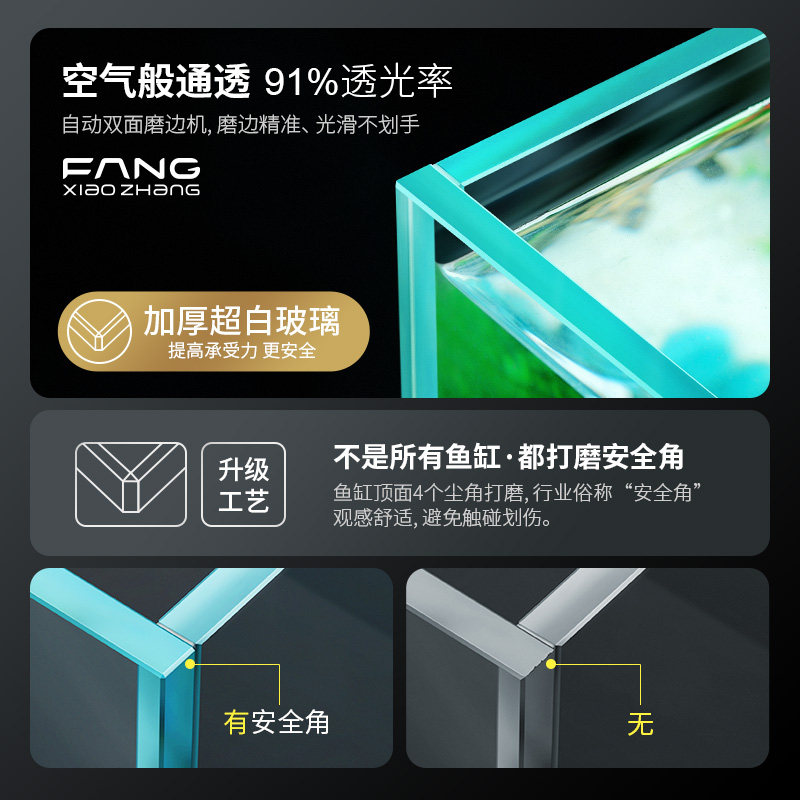 方小章金晶超白玻璃鱼缸桌面客厅金鱼缸乌龟缸大白系列裸缸水草缸