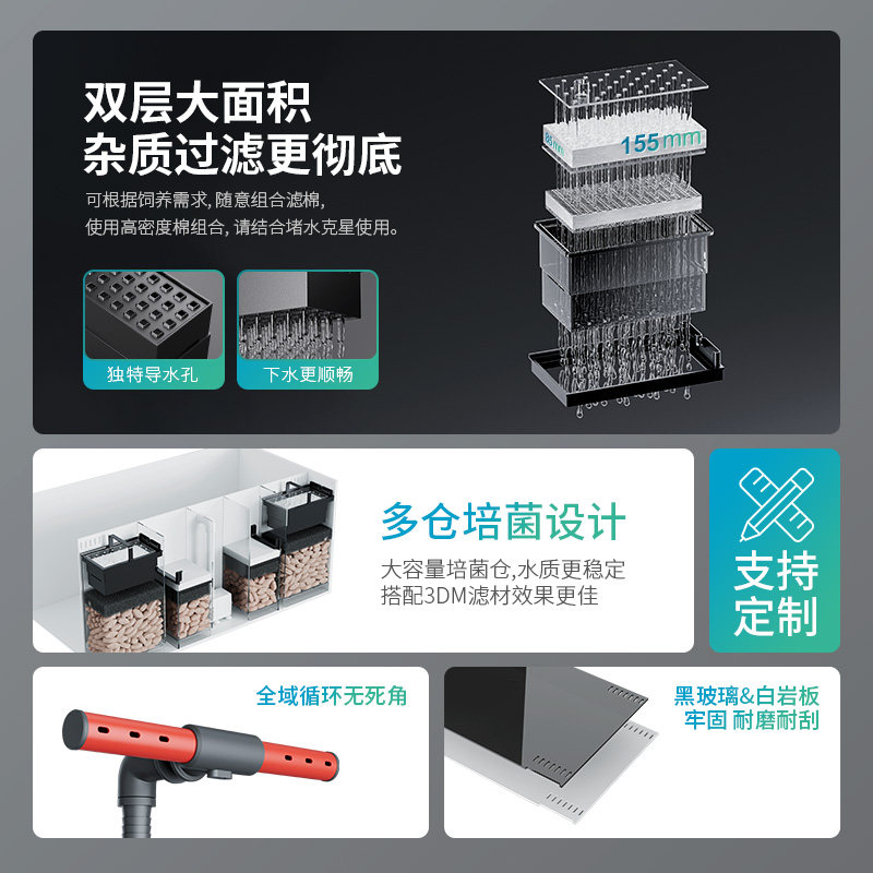 淘定制定做背滤侧滤鱼缸沉淀家用自动收集鱼便增氧过滤缸背滤鱼缸