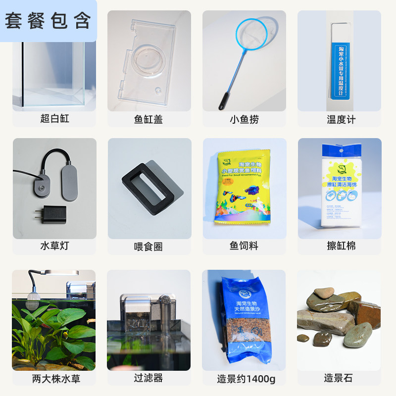 淘斗鱼缸超白玻璃缸方形办公家用创意高级感小型迷你桌面缸懒人养鱼