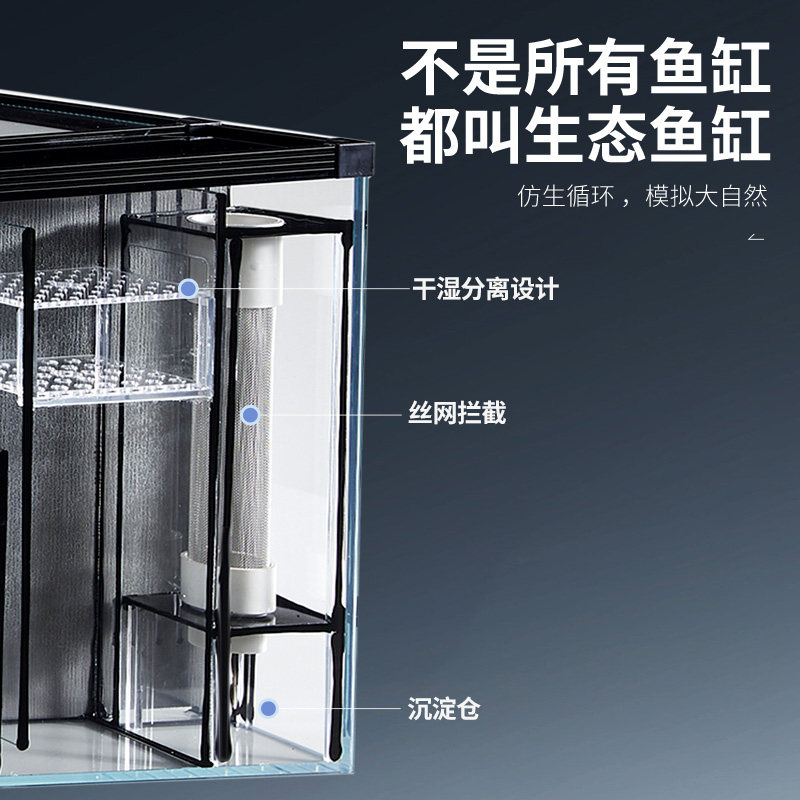 淘方小章第2代客厅超白玻璃双盒4仓大型背过滤鱼缸生态自循环金鱼缸