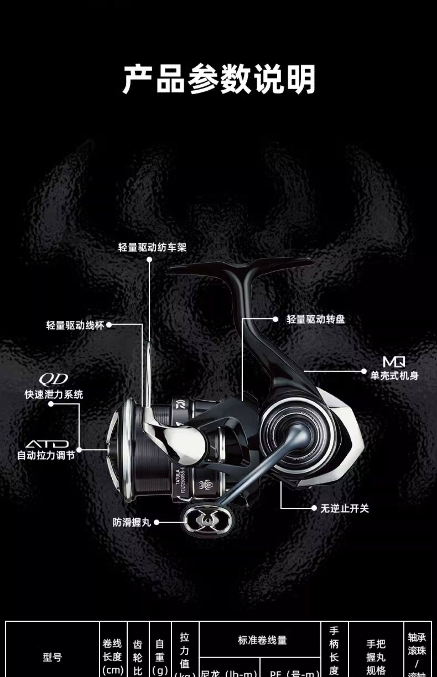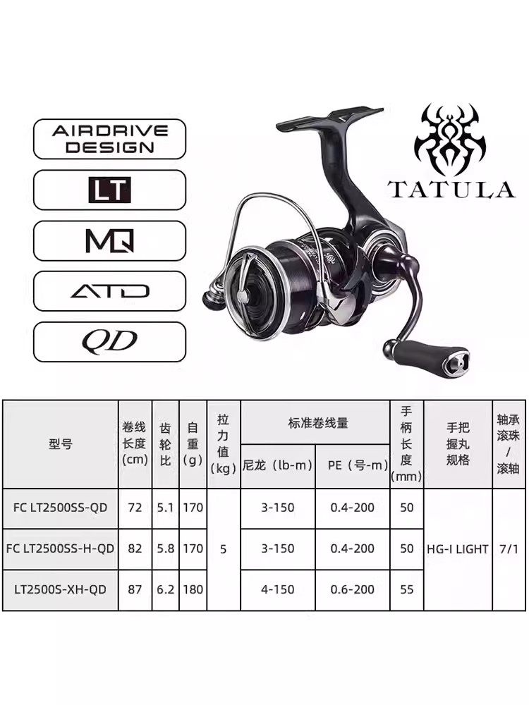 DAIWA达亿瓦23新款TATULA蜘蛛小型纺车轮专为淡水路亚钓设计,是鲈鱼钓手的理想之选。采用轻量化高强度机身,搭配精密线杯系统,实现顺滑抛投与稳定收线。搭载T-Wing线规技术,有效减少出线阻力,提升抛投距离与精准度。配备ATD长耐久 Drag系统,提供平稳顺滑的瞬间刹车力,应对大物冲击更从容。紧凑小巧的设计兼顾手感与便携性,适合长时间作钓。无论是精细作钓还是远投搜索,TATULA蜘蛛轮以卓越性能与可靠品质,助力钓者征服各类淡水环境,是追求高效路亚体验的优选装备。