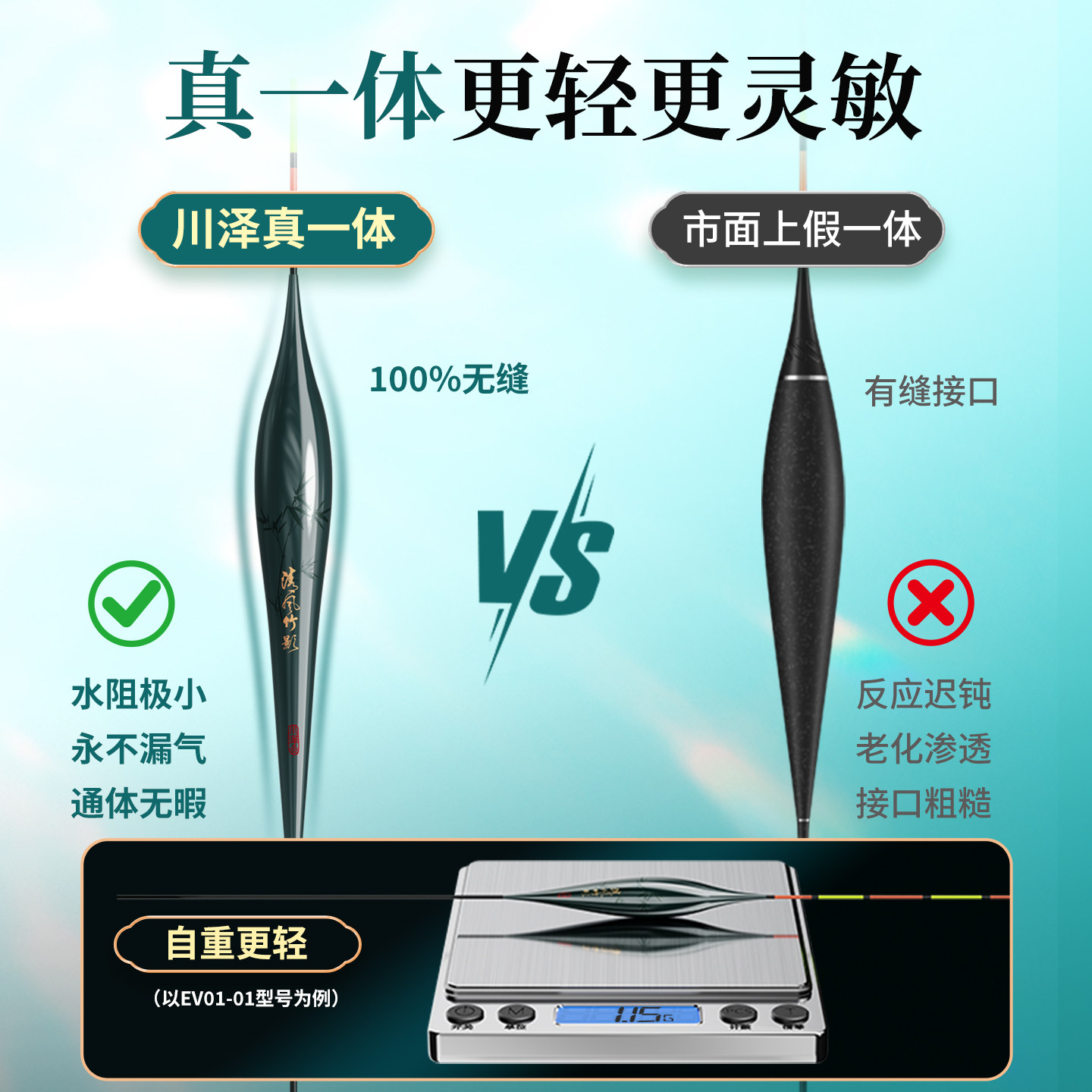 天猫川泽清风竹影EV一体夜光漂0.65mm极细硬尾高灵敏鲫鱼漂OLED电子漂