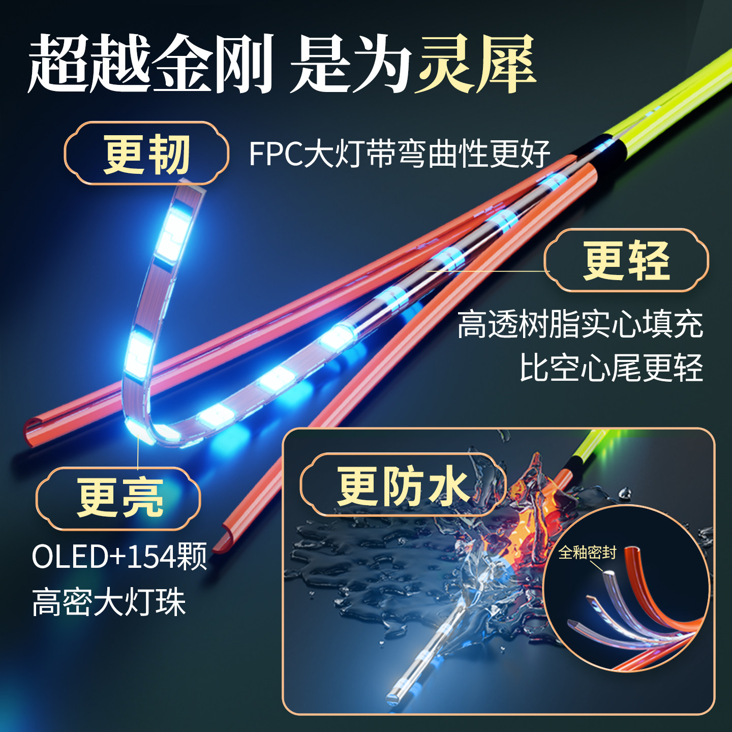 0.65mm极细OLED金刚硬尾夜光漂322小电池高灵敏咬钩变色电子鱼漂