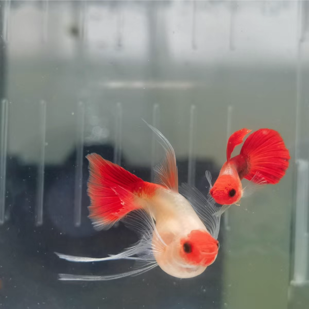 新品红头玻璃猫与大C球体孔雀鱼,是当前水族界备受追捧的热门小型热带观赏鱼。红头玻璃猫通体透明如水晶,头部呈现鲜艳红色,游动时轻盈灵动,极具观赏价值;大C球体孔雀鱼则以其圆润饱满的体型、飘逸的长鳍和绚丽多变的色彩著称,尤其“大C”背鳍纹路独特,彰显贵族气质。黄金玻璃猫同样以半透明身躯搭配金色光泽,群游效果出众。这些鱼种性格温和,适应力强,适合搭配水草造景缸饲养,为家居或办公空间增添灵动生机,是新手与资深鱼友的理想选择。