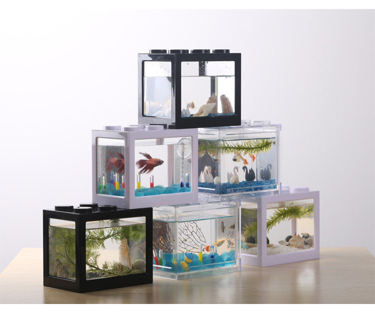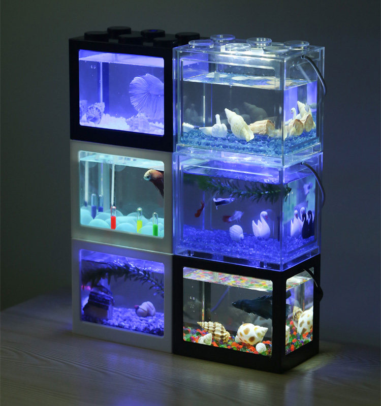 淘宝积木式创意LED灯鱼缸泰国斗鱼缸迷你USB灯海藻球盒生态爬宠观赏箱