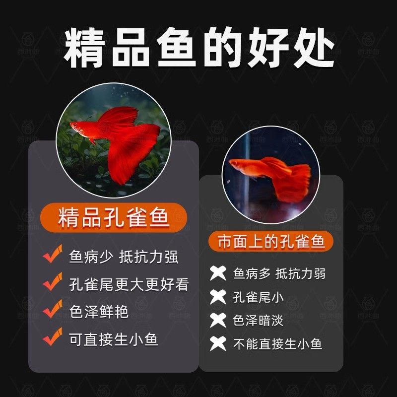 天猫美国全红孔雀鱼纯种热带鱼小型观赏鱼孔雀鱼凤尾鱼孔雀胎生易繁殖