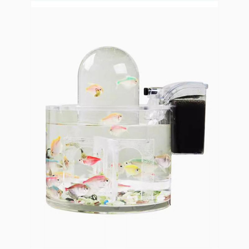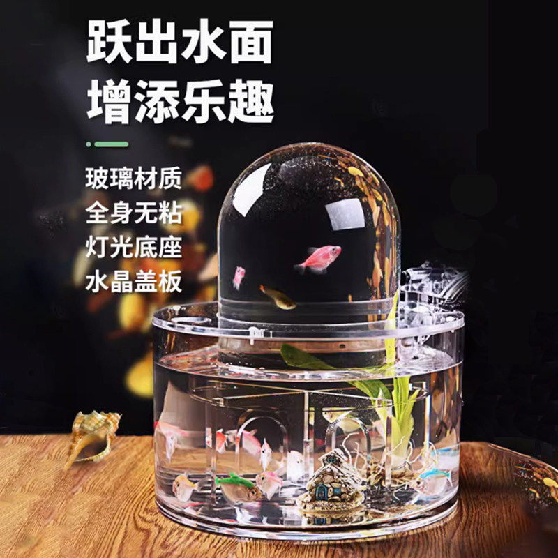 玻璃负压鱼缸生态瓶是一种集观赏性与生态功能于一体的创新水族装置,采用高透光强化玻璃制成,造型多为圆形或球形,营造悬浮般的视觉美感。其独特负压设计使水位稳定,配合自动补水器,有效维持水体平衡,减少日常维护。缸内可布置水草、沉木、砂石等自然造景,形成微型生态系统,适合养植小型水生植物或饲养迷你观赏鱼。无需频繁换水,节能环保,兼具装饰与生态教育功能,广泛应用于家居、办公及商业空间,是现代极简风格与自然景观完美融合的生态艺术品。