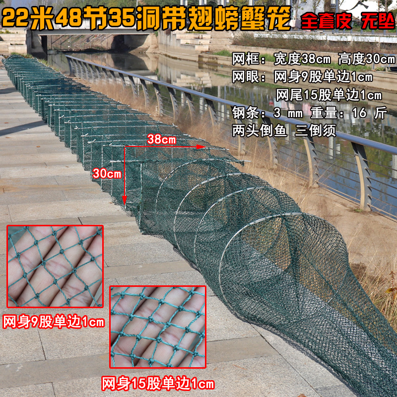 这款大号折叠渔网——带翅鱼笼虾笼,专为高效捕捉河虾、泥鳅、黄鳝等淡水水产设计。采用高强度耐磨网布与韧性骨架,结构稳固,耐用抗撕。独特的带翅入口设计,引导鱼虾单向进入,有效防止逃脱。顶部配备方格盖笼,便于投饵与取货,操作便捷。整体可折叠收纳,轻便易携带,适合河流、池塘、稻田等多种水域使用。无论是休闲垂钓还是小型捕捞作业,都能大幅提升捕鱼效率,是户外捕鱼的理想工具。安全环保,不伤鱼体,实现可持续捕捞。