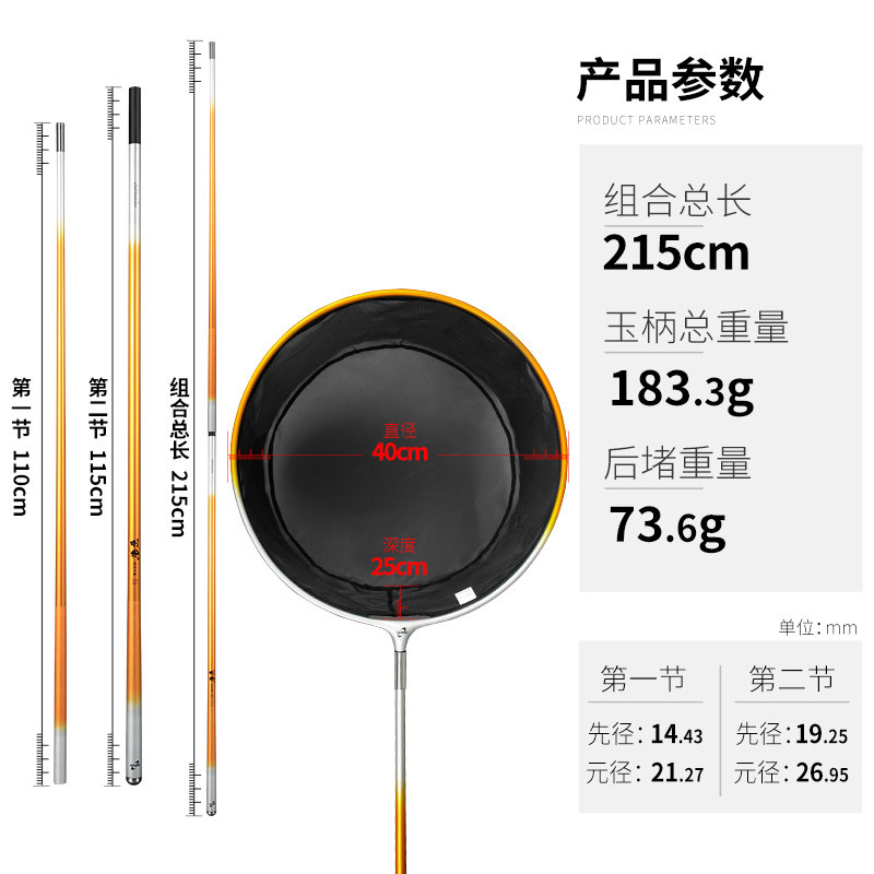 天猫武汉天元刚粉抄网110/215cm组合玉柄网头套装鱼网兜碳素抄网套装