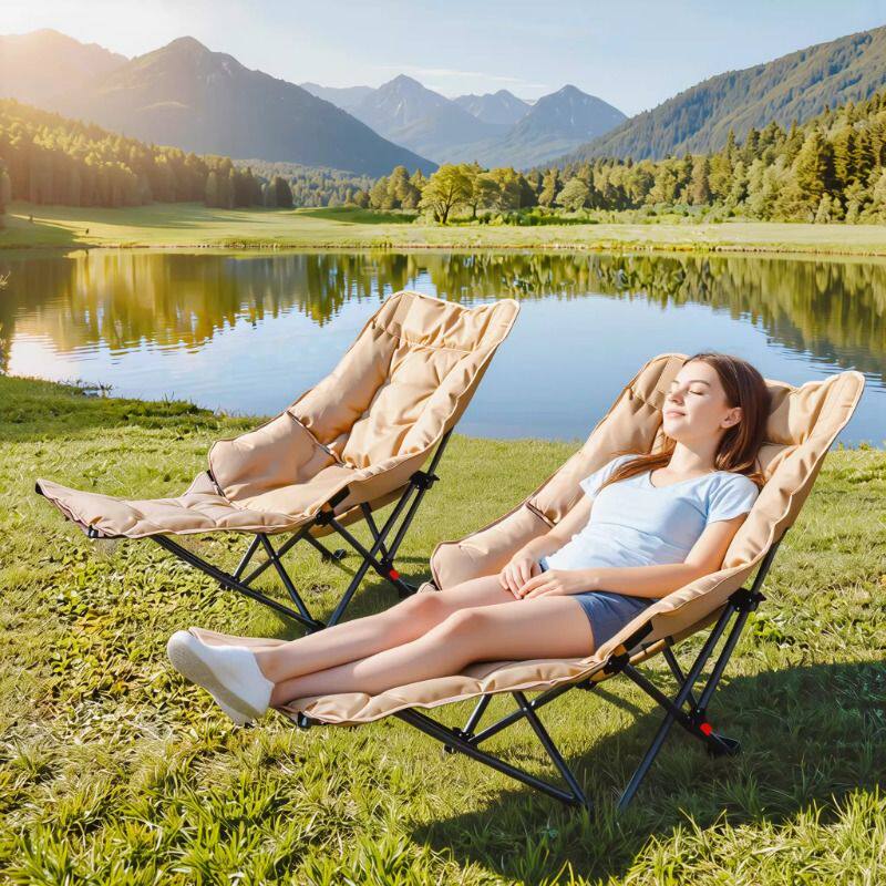 骆驼加厚夹棉高背月亮椅躺椅户外露营折叠可睡可躺午睡椅懒人钓鱼