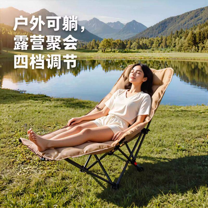 天骆驼加厚夹棉高背月亮椅躺椅户外露营折叠可睡可躺午睡椅懒人钓鱼