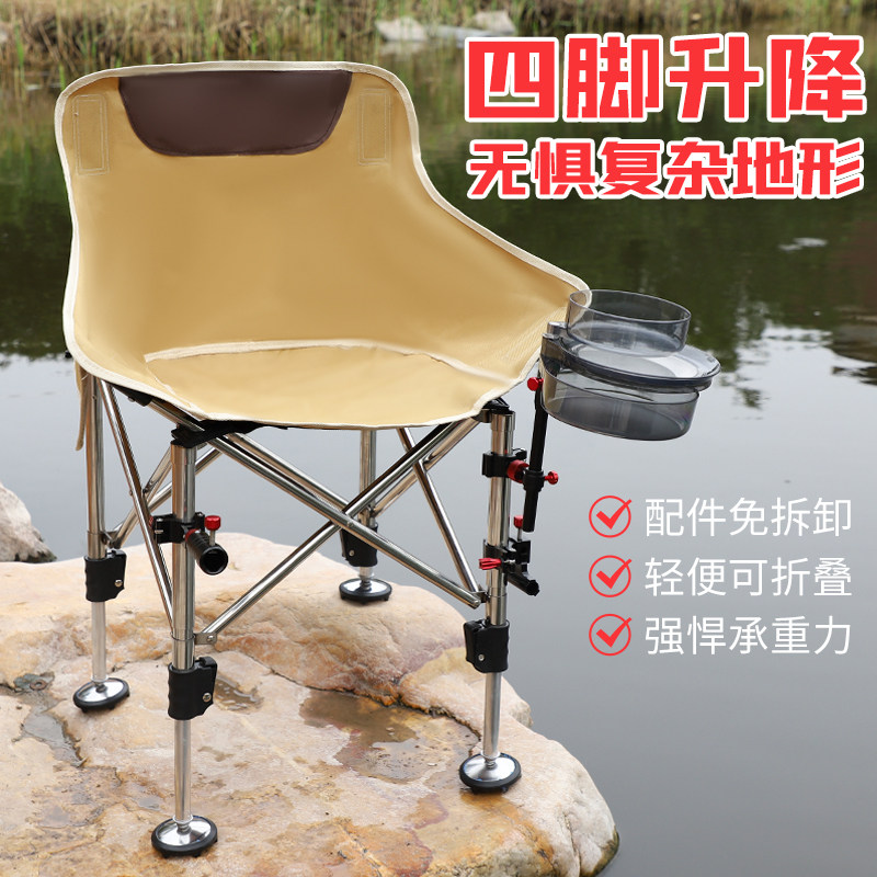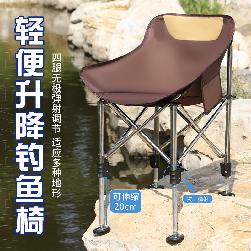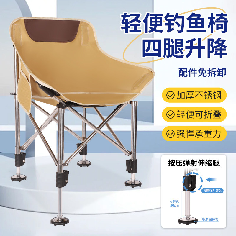 淘宝新款不锈钢月亮椅全折叠户外专用野钓椅新型全地形升降脚小钓鱼椅