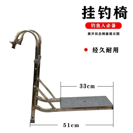 2025新款挂钓椅凳台采用优质不锈钢材质,坚固耐用、防锈抗腐蚀,专为桥栏、河栏、栈道及筏钓等复杂环境设计。其创新折叠结构,轻巧便携,可快速安装于各类栏杆之上,稳固承重,解放双手,让垂钓更轻松舒适。座椅高度可调,搭配防滑脚踏和置物台,满足长时间野钓需求。整体设计紧凑,收纳后体积小,方便携带与存放。无论是江河湖海还是户外野钓,这款多功能挂钓椅凳台都能为您提供稳定、安全、便捷的垂钓体验,是钓鱼爱好者的理想装备。
