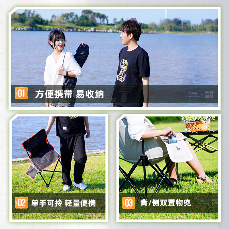 天户外折叠椅月亮椅露营椅子便携式沙滩椅钓鱼野餐折叠凳子懒人沙发