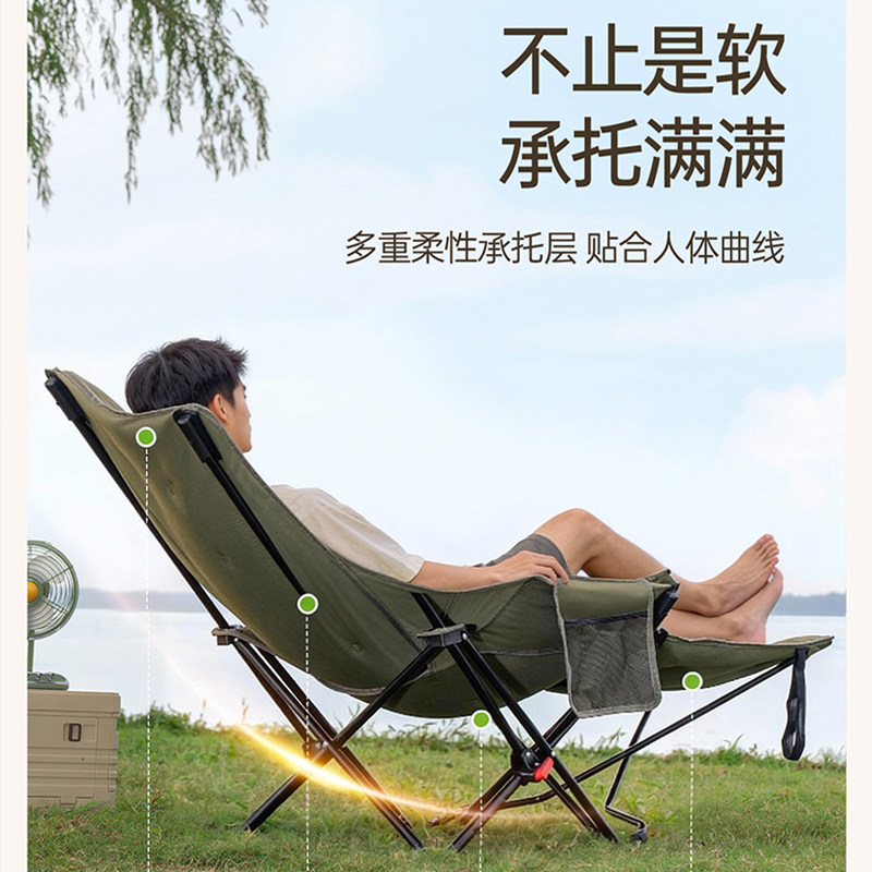 天猫露营加厚月亮椅户外折叠椅子躺椅午休便携钓鱼沙滩椅野餐野外新型
