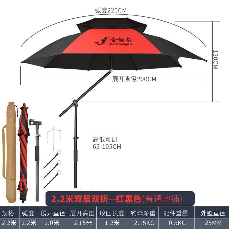 一帆精工2024年新款遮光钓鱼伞2.2米防雨钓鱼遮阳伞双层雨伞