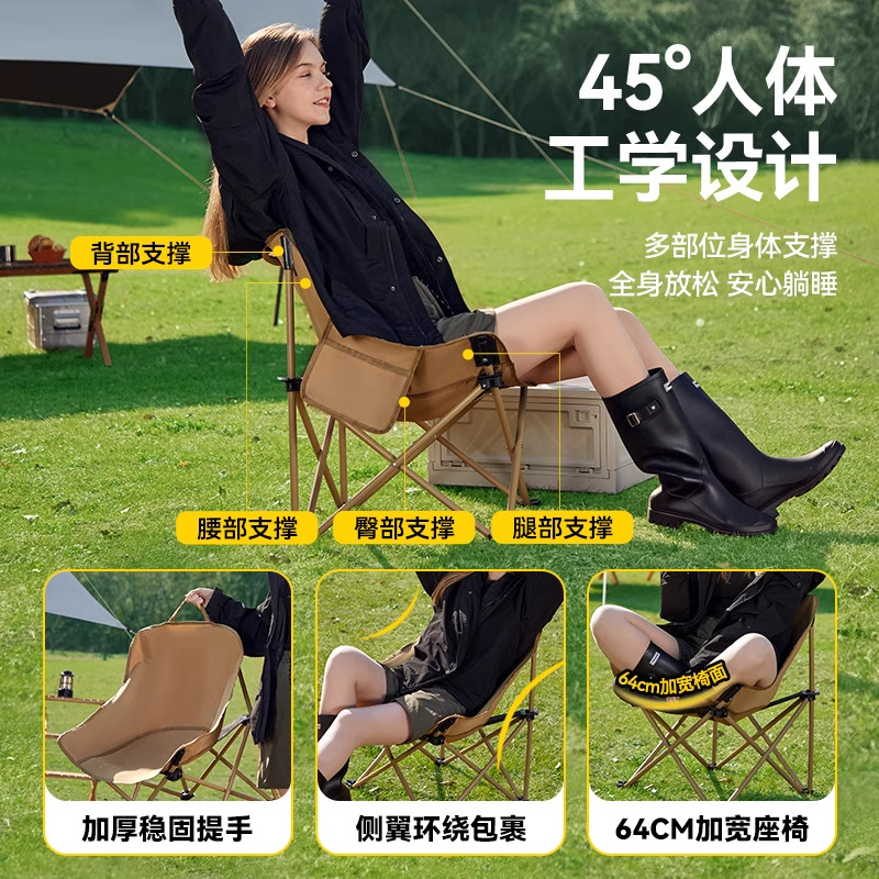 天骆驼夹棉高背月亮椅躺椅户外露营折叠可睡可躺午睡加厚椅子钓鱼