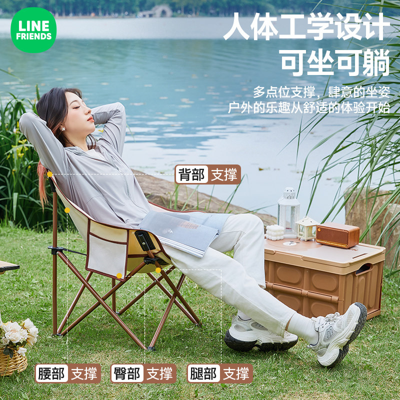 天猫布朗熊户外折叠椅月亮椅露营椅子便携式野餐躺椅沙滩椅钓鱼凳专用