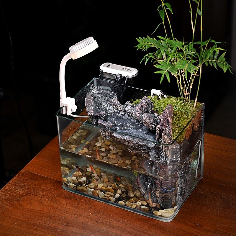 淘宝中国风桌面微景缸懒人生态鱼缸小型家用客厅观赏自循环办公室摆件