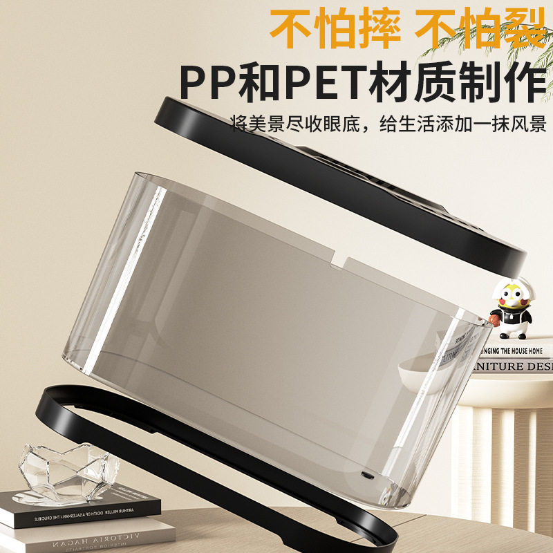 新款透明鱼缸小型景观全套生态透明家用客厅鱼缸,采用高透超白玻璃打造,质感清澈,视野开阔,完美呈现水下生态之美。内置微型过滤系统与LED照明,支持自动循环净水与柔和补光,营造健康稳定的生态环境。搭配沉木、水草、砂石等自然造景材料,可DIY打造个性化微型水景,兼具观赏性与疗愈效果。小巧精致的设计,适合摆放在客厅、书房或办公桌,不占空间却充满生机。无需频繁换水,维护简便,是都市家庭理想的生态装饰品,为生活增添一抹清新自然的灵动气息。