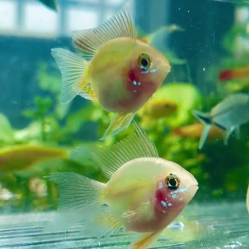 桃心金波子鱼,学名短鲷,是一种色彩绚丽的淡水小型热带观赏鱼,因其独特的桃心形尾鳍和波光粼粼的金色鳞片而得名。它融合了宝蓝阿凡达的神秘蓝调、荷兰凤凰的优雅体态与皮卡丘般的活泼灵动,体色鲜艳多变,游姿轻盈,极具观赏价值。适宜水温24-28℃,喜弱酸性软水,性情温和,适合与小型灯鱼混养。桃心金波子鱼不仅外形可爱,繁殖行为也颇具趣味,是水族爱好者追捧的热门品种。其小巧体型适合中小型水族箱,为居室增添一抹灵动生机,是集颜值与趣味于一身的优质观赏鱼。