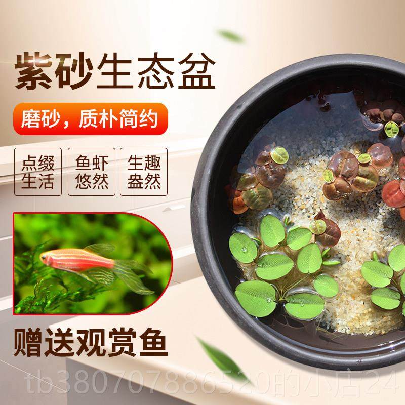 淘宝高档创意紫砂陶瓷鱼缸桌面生态盆造景萍微景观水培盆物景植浮观赏
