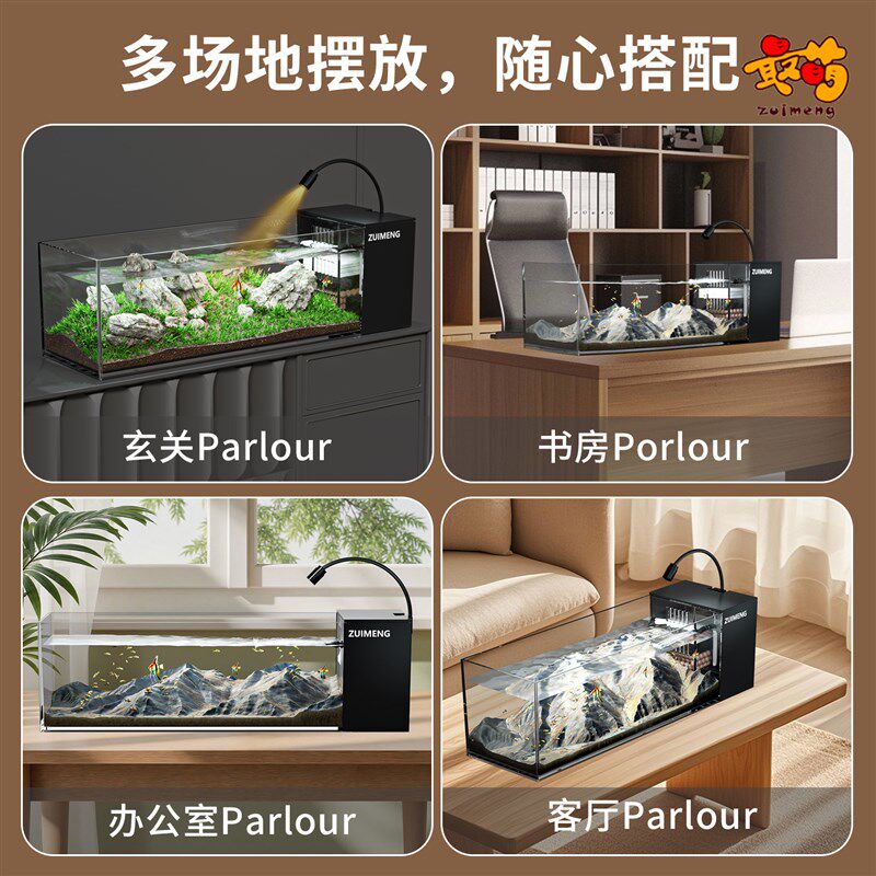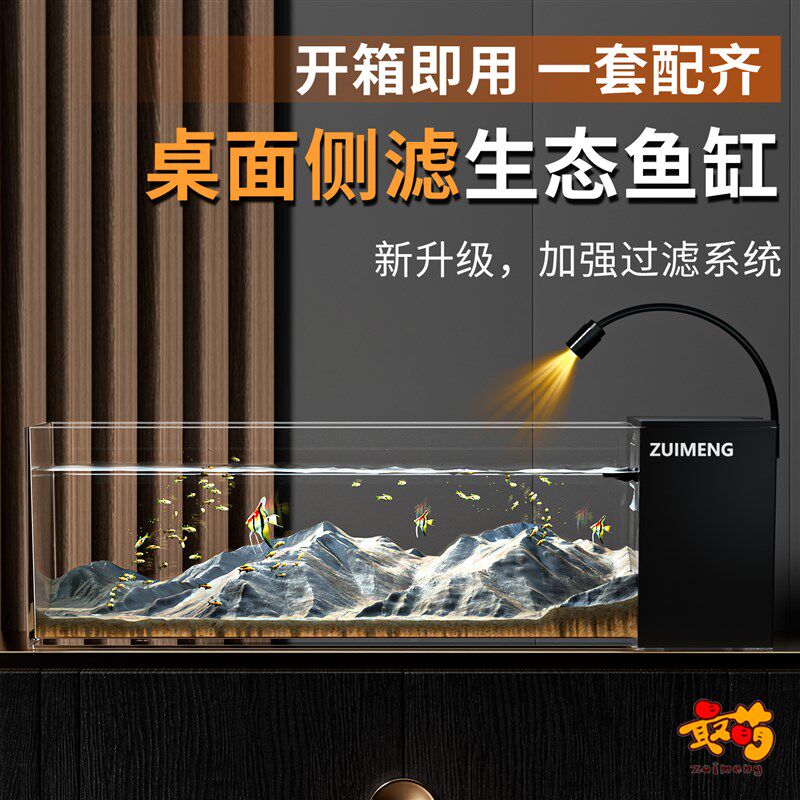 淘宝溪流缸2025新款家用桌面南美生态观赏鱼缸过滤制氧一体机造景全套