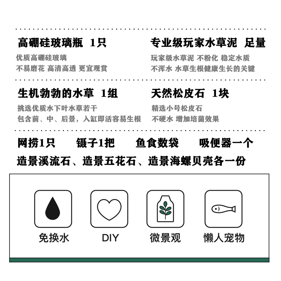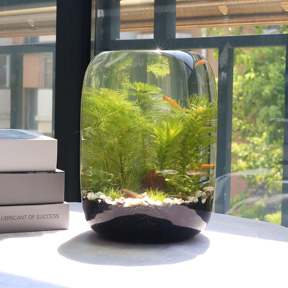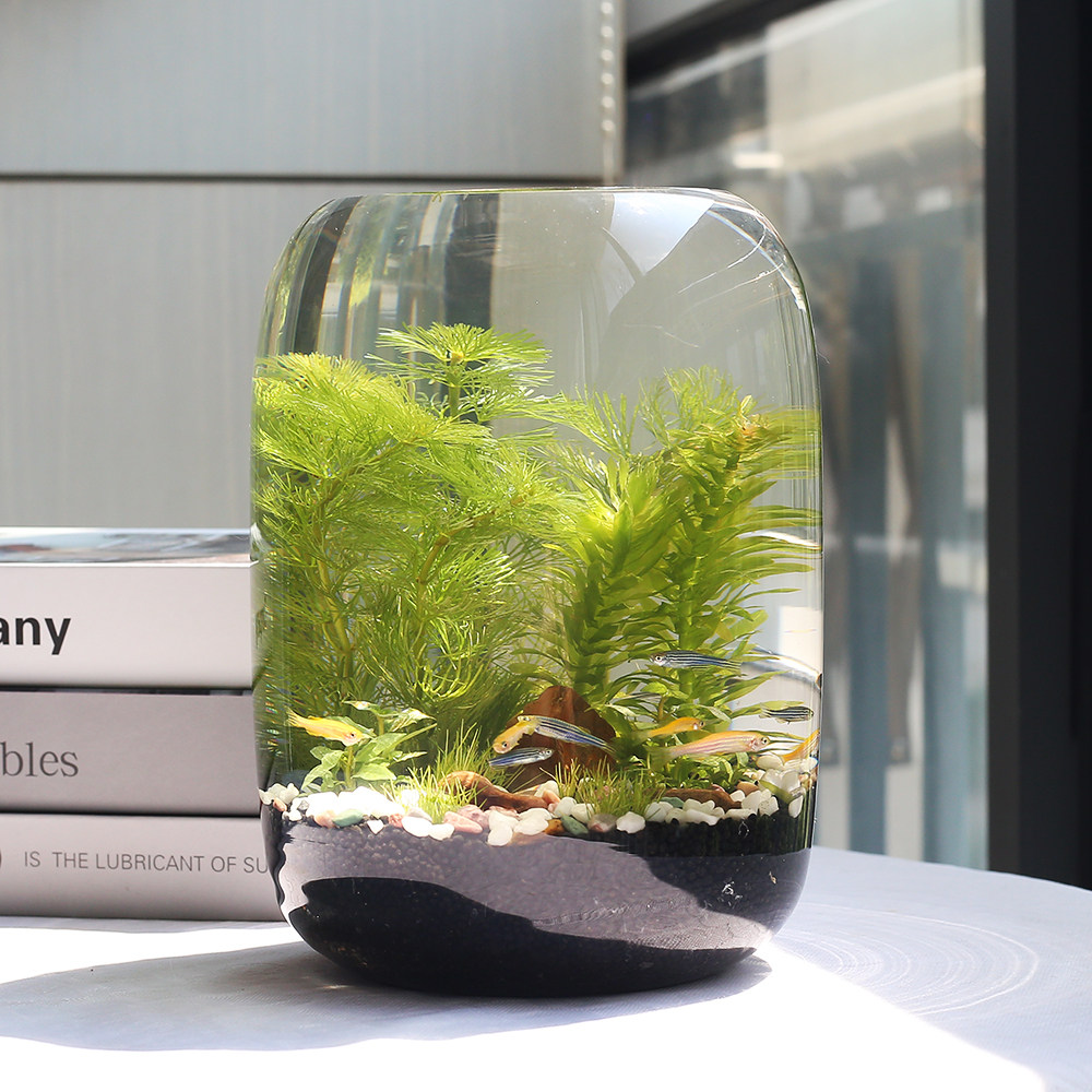 淘宝生态瓶免换水微景观真水草办公桌面小型鱼缸观赏鱼虾diy创意礼物