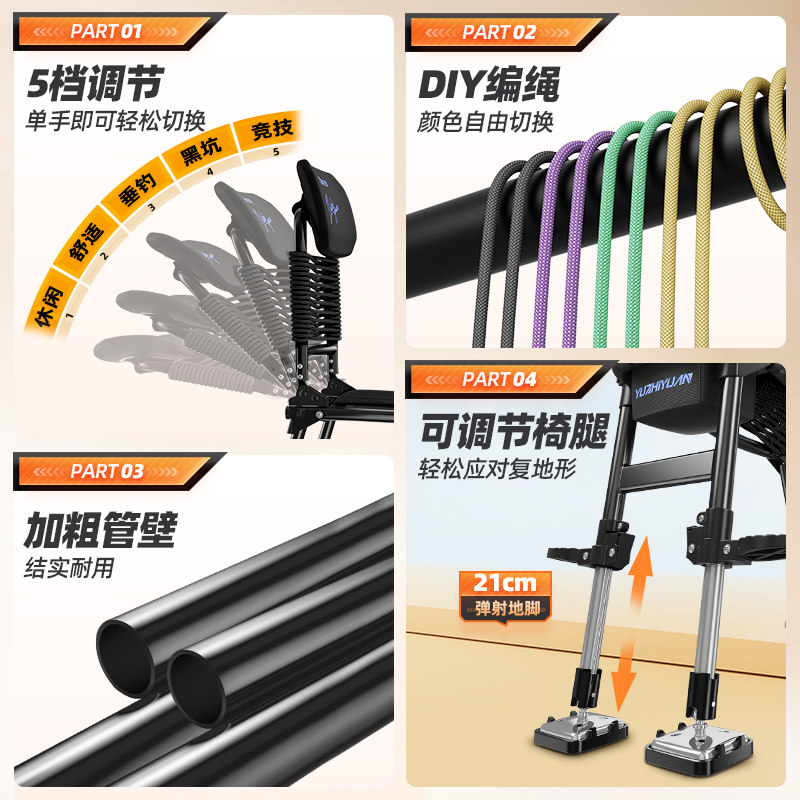 天猫渔之源2025新款AK编绳骑士钓椅野钓专用多地形便携折叠小钓鱼椅子
