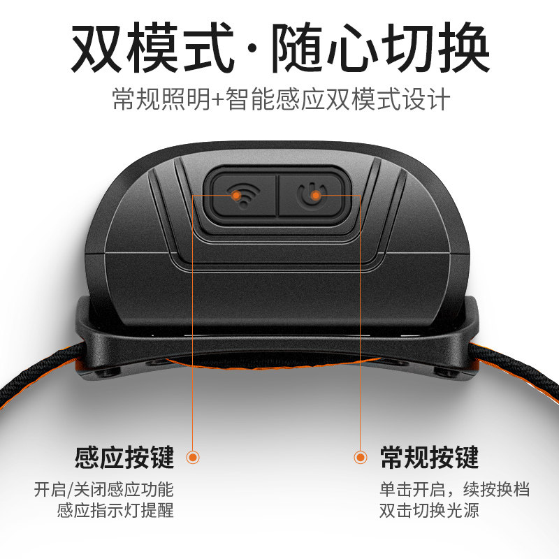 神火HL05强光感应头灯是一款专为夜间作业设计的头戴式照明手电筒,具备超亮LED光源,亮度高达1000流明,照明距离远、视野清晰,适用于夜钓、露营、徒步、维修等多种场景。采用人体工学设计,佩戴舒适稳固,头带可调节,适合不同头型。支持USB快充,内置大容量锂电池,续航长达12小时以上,满足不同时长使用需求。配备智能感应功能,挥手即可开关,操作便捷。IPX4防水等级,适应户外复杂天气。轻便耐用,是夜间活动不可或缺的照明利器。